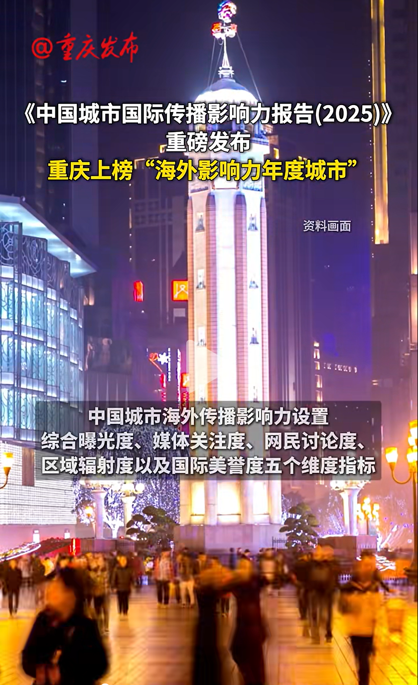 6月23日,《中国城市国际传播影响力报告(2025)》在北京发布,重庆再次入选榜单。作为中国中西部唯一的直辖市,重庆以其独特的地貌风光与都市气质,频频在海外社交平台引发关注。